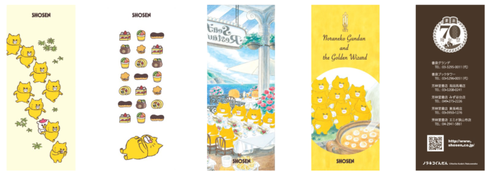 『ノラネコぐんだん』と「書泉70周年祭」のコラボレーション企画として、期間中、書泉・芳林堂書店全店にて買い物をされた方に、『ノラネコぐんだん』絵柄の【 オリジナルしおり(全4種)】を、日替わりでお渡しいたします。