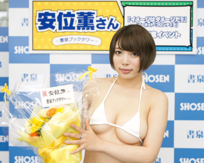 グラビアタレントの安位薫さんをお迎えして、DVD『イメージはダメージだ!!』(イーネット・フロンティア)発売記念イベントを2020年8月23日に書泉ブックタワーで開催しました。