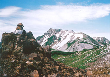 さらに、巨石がゴロゴロした所や、雪渓が残っている箇所も過ぎると、平坦な乗鞍岳に出ました。