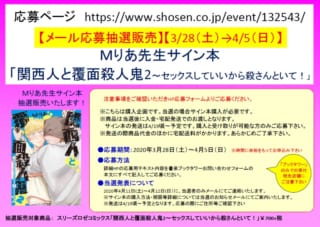 【メール応募抽選販売】【3/27-4/5受付】Mりあ先生サイン本「関西人と覆面殺人鬼2~セックスしていいから殺さんといて!」