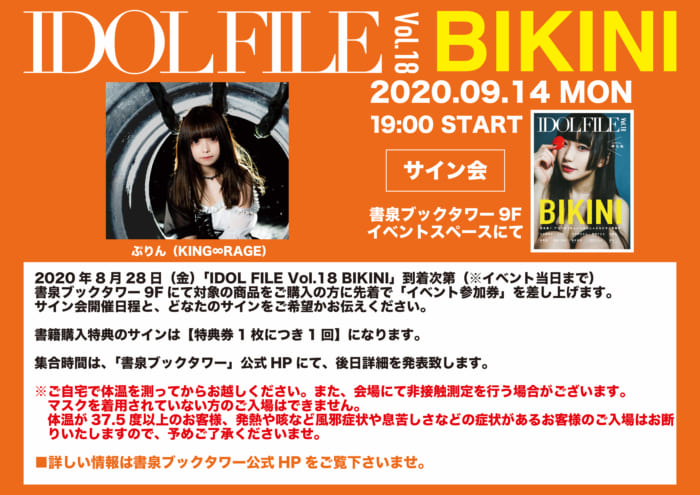 ※イベント当日はご購入頂いた『IDOL FILE Vol.18 BIKINI』を必ずお持ち下さい。お忘れになりますとサインがお入れできません