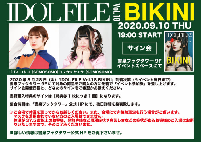 ※サインは『IDOL FILE Vol.18 BIKINI』への本人サインのみ(為書、メッセージ等は不可)とさせていただきます。