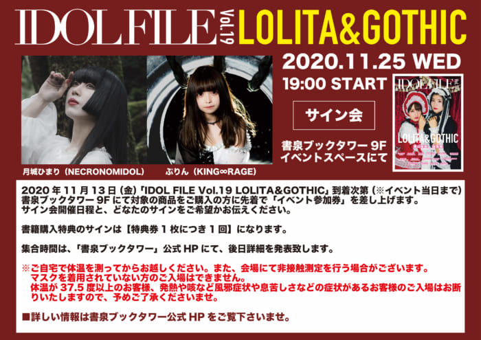 ※イベント当日はご購入頂いた『 IDOL FILE Vol.19 LOLITA&GOTHIC』を必ずお持ち下さい。お忘れになりますとサインがお入れできません