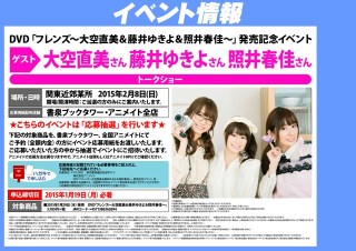 DVD「フレンズ~大空直美&藤井ゆきよ&照井春佳~」をご予約(5185円+税、全額内金)のお客様に応募用紙をお渡し致します