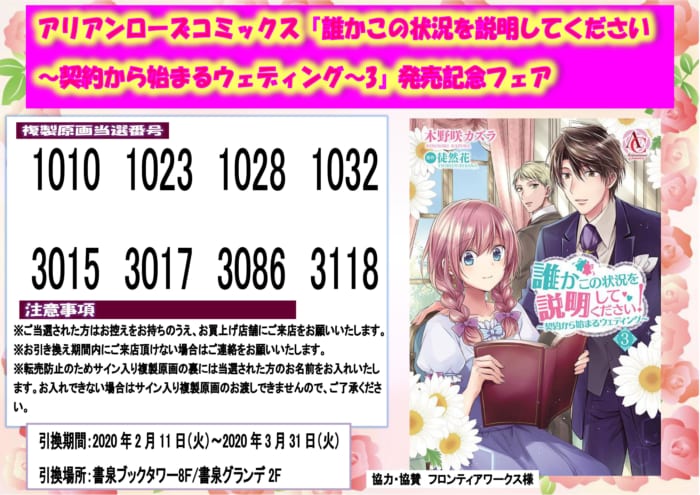 アリアンローズコミックス『誰かこの状況を説明してください! ~契約から始まるウェディング~3』発売記念フェア