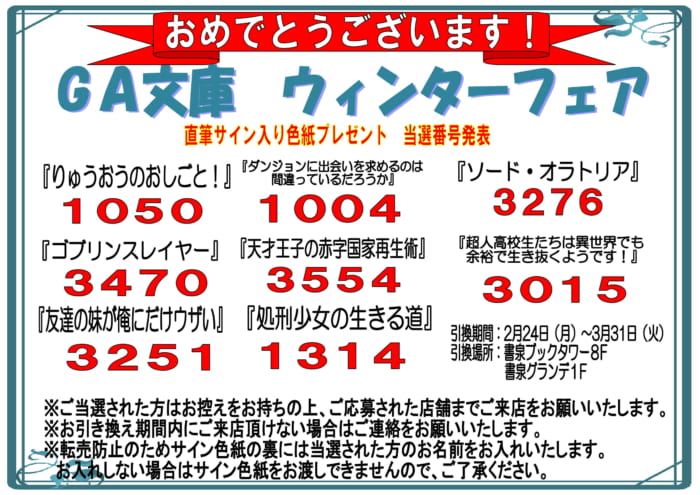 ※ご当選された方はお控えをお持ちのうえ、お買上げ店舗にご来店をお願いいたします。
