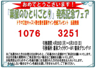 ドラマCD全キャスト寄せ書き直筆サイン色紙の当選番号発表です!