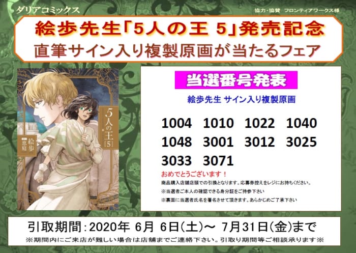 ※フェア後先生にサインと当選者氏名を入れて頂いてお渡しいたします。