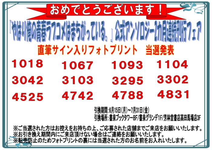 直筆サイン入りフォトプリントの当選番号発表です!