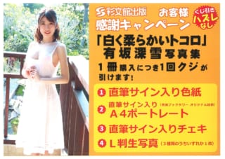 2020年6月19日(金)より、書泉グランデBF、書泉ブックタワー9F店頭にて有坂深雪写真集「白く柔らかいトコロ」(直筆サイン入り)を1冊ご購入につき、1回クジが引けます!(ハズレなし)