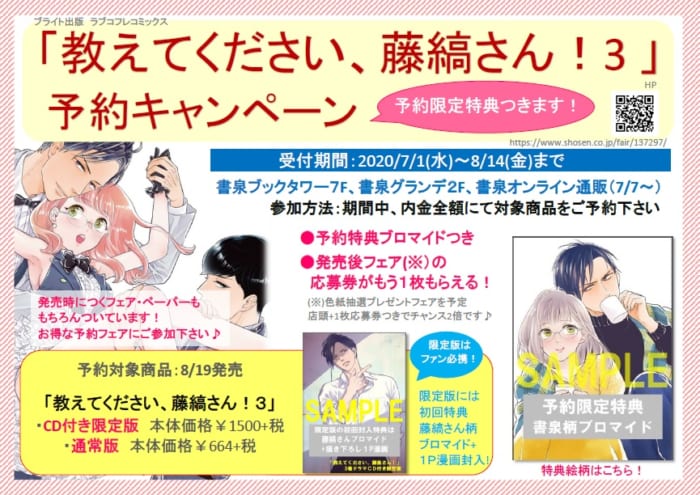 「教えてください、藤縞さん!3(限定版・通常版)」を書泉にてご予約の方に限定ブロマイドをプレゼント!