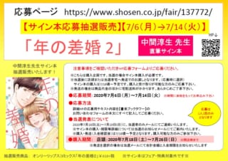 【メール応募抽選販売】【7/6-7/14受付】中間淳生先生「年の差婚 2」サイン本抽選販売お申込み