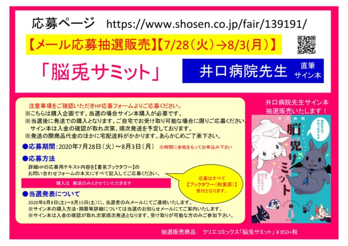 【メール応募抽選販売】【7/28-8/3受付】井口病院先生「脳兎サミット」サイン本抽選販売お申込み