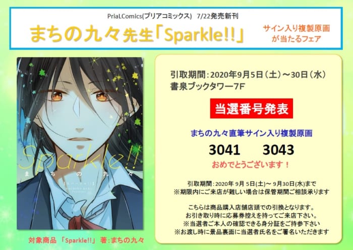 【7/22-8/10まで応募受付】まちの九々先生サイン本抽選販売実施!→「Sparkle!!」サイン本抽選販売はこちら