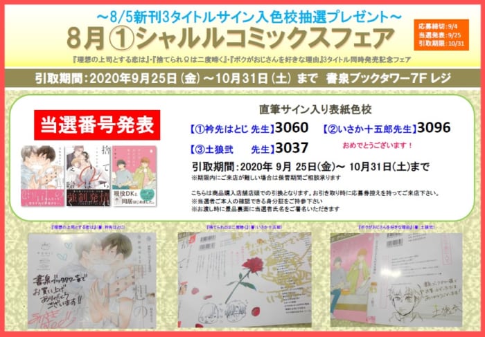 ※お渡し時に景品裏面に当選者氏名をご署名いただきます