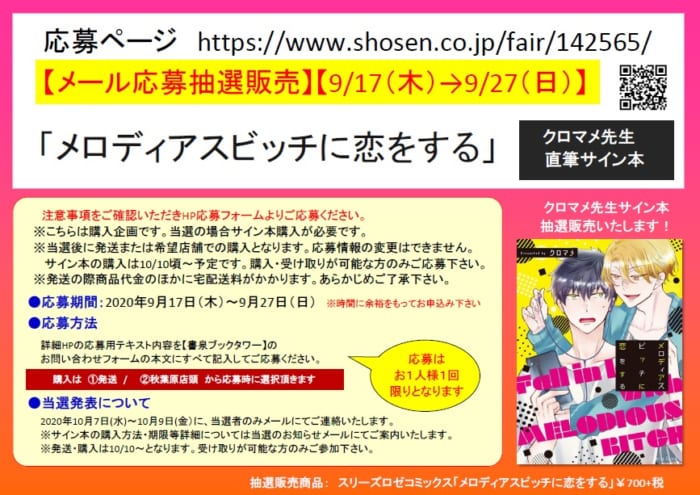 クロマメ先生「メロディアスビッチに恋をする」サイン本サイン本抽選販売お申込み