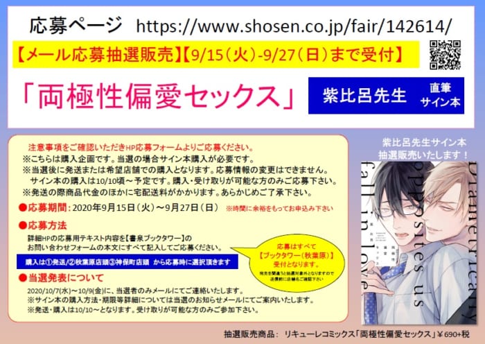 紫比呂先生「両極性偏愛セックス」サイン本抽選販売お申込み