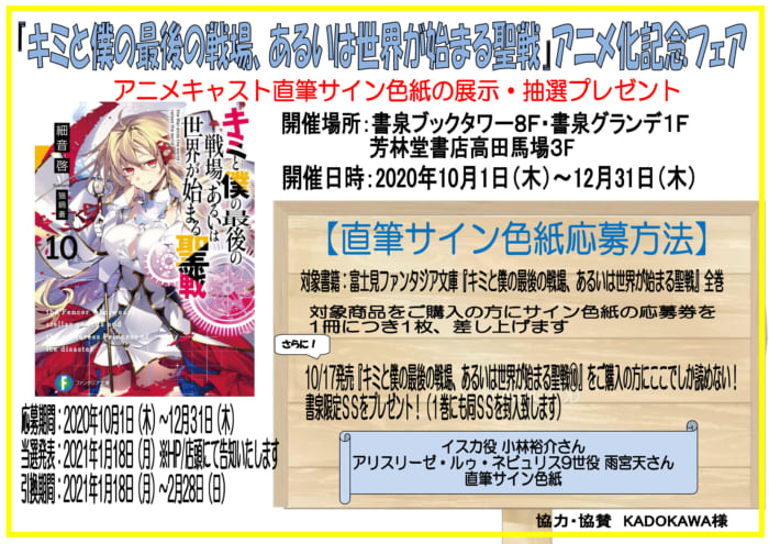 『キミと僕の最後の戦場、あるいは世界が始まる聖戦』アニメ化記念フェア抽選係