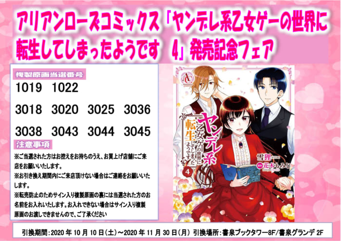 アリアンローズコミックス『ヤンデレ系乙女ゲーの世界に転生してしまったようです 4』発売記念フェア