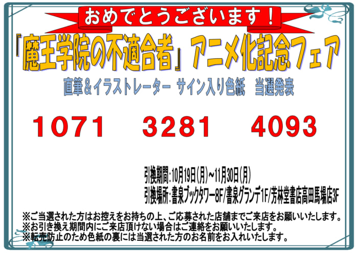 著者・イラストレーター直筆サイン色紙の当選番号発表です!