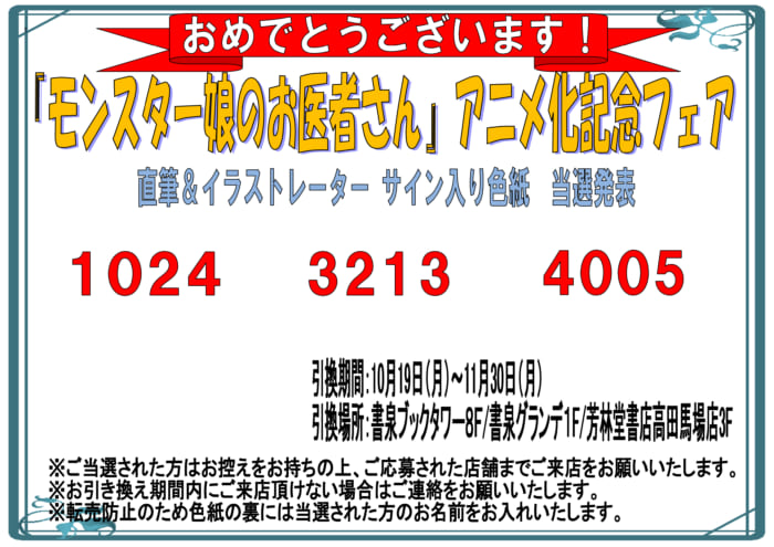 ※ご当選された方はお控えをお持ちのうえ、お買上げ店舗にご来店をお願いいたします。