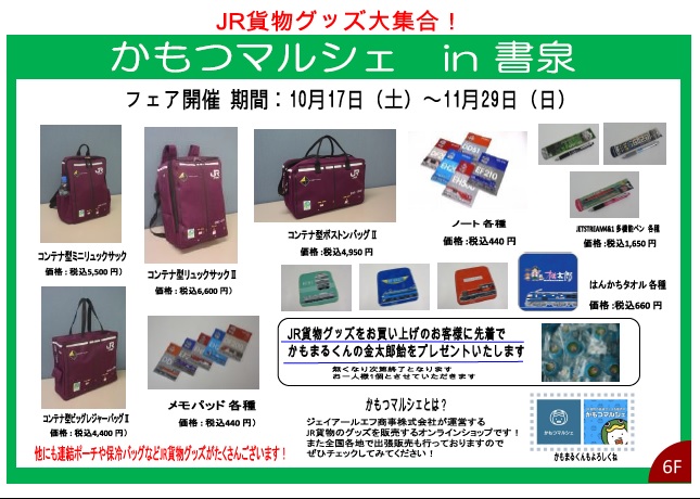 またフェア開催記念として、期間中にJR貨物グッズを購入したお客様に先着で「かもまるくん金太郎飴」をお一人様におひとつ、ささやかなプレゼントをいたします。(無くなり次第終了となります)