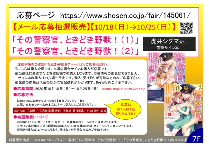 虎井シグマ 先生「その警察官、ときどき野獣!(1)」「その警察官、ときどき野獣!(2)」サイン本抽選販売お申込み