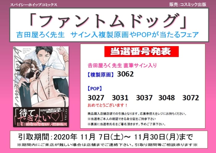 引取期間:2020年 11月 7日(土)~ 11月30日(月)まで
