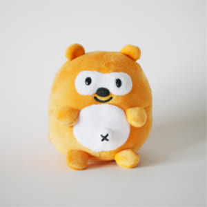 手頃な大きさ、キュートなフォルム、フワモコ感触、しっぽで自立します。