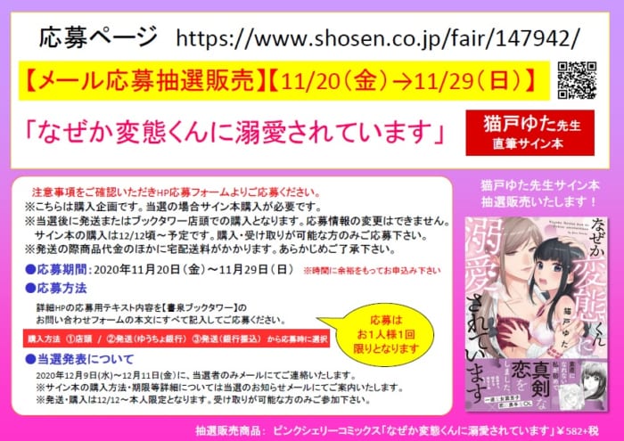 猫戸ゆた 先生「なぜか変態くんに溺愛されています」サイン本抽選販売お申込み