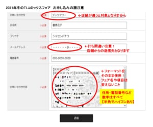 ※記入事項に間違いや不備があった場合、サイン本の購入は出来ません。あらかじめご了承下さい。