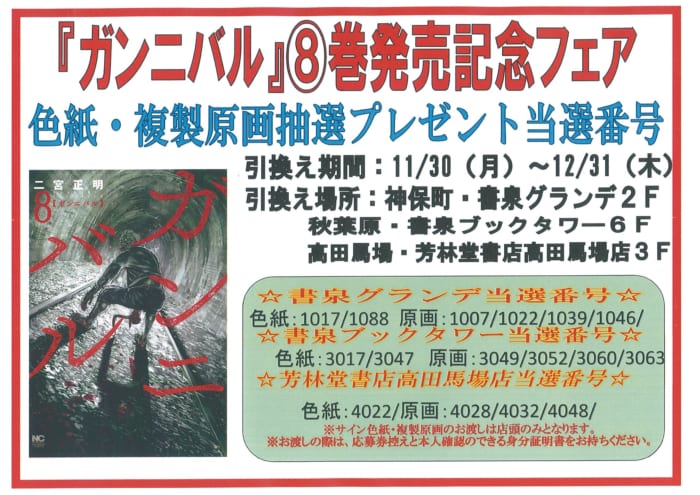 『ガンニバル8巻』発売記念サイン色紙・複製原画が当たるフェア