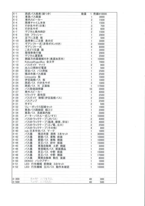 座席や方向幕やレバーなどなど、いずれも現品限りの品物です。