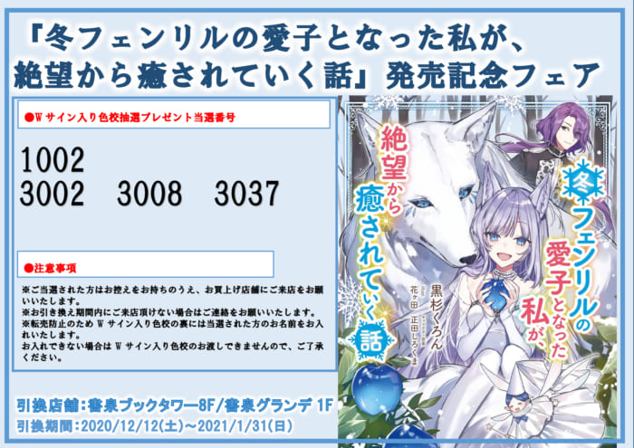 マッグガーデン・ノベルズ『冬フェンリルの愛子となった私が、絶望から癒されていく話』発売記念フェア