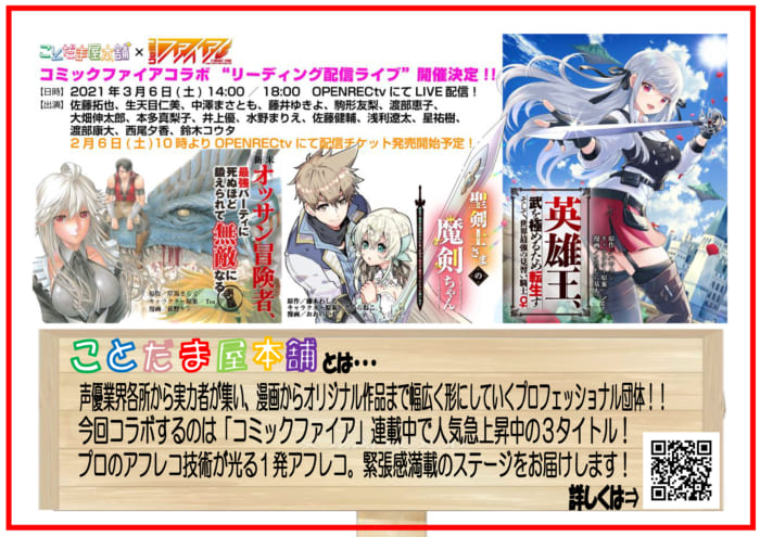 『ことだま屋本舗×コミックファイア』リーディングライブ配信記念フェア抽選係