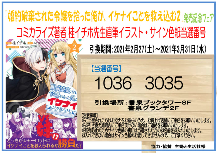 桂イチホ先生『婚約破棄された令嬢を拾った俺が、イケナイことを教え込む2』発売記念 直筆イラスト&サイン入り色紙が当たるフェア