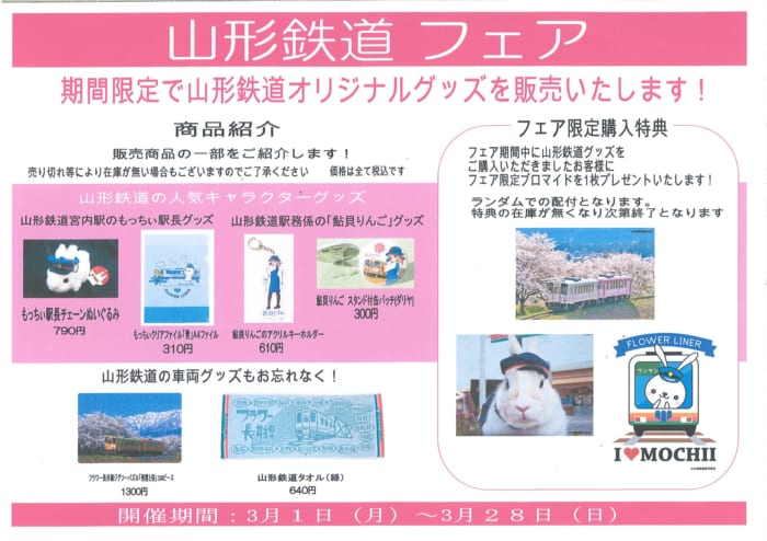 期間中に山形鉄道グッズをご購入いただきますとフェア限定ブロマイドを1枚プレゼントいたします。