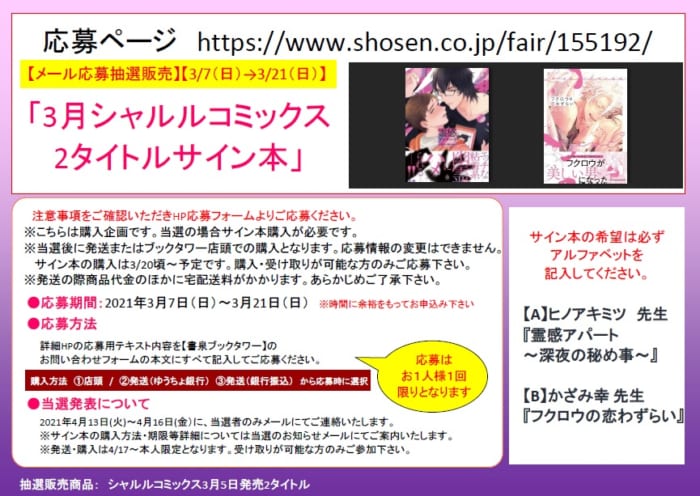 ※サイン本の購入方法詳細については当選のお知らせメールにてご案内いたします。