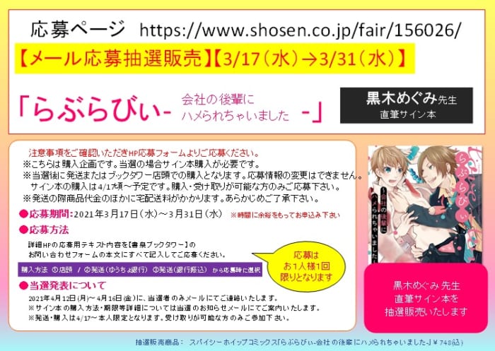 黒木めぐみ先生「らぶらびぃ」サイン本抽選販売お申込み