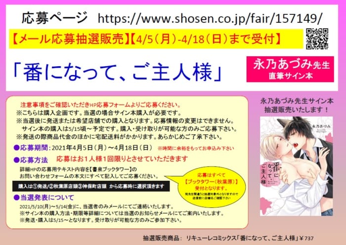 永乃あづみ先生「番になって、ご主人様」サイン本抽選販売お申込み