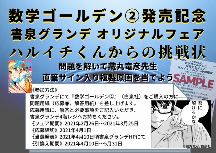 - 当選発表:数学ゴールデン②発売記念 書泉グランデオリジナルフェア”ハルイチくんからの挑戦状”