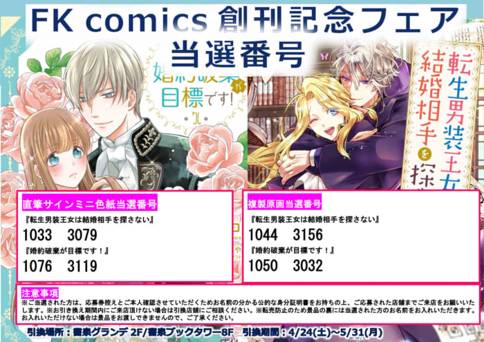 FKcomics創刊記念フェア ミニサイン色紙&複製原画当選発表です。