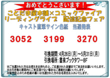 ※時間外の到着は抽選対象外となります。お時間に余裕をもってお申込み下さい ※こちらは販売企画です。当選の際に商品の購入が必要です ※購入は ①店頭購入 ②発送(支払:ゆうちょ銀行)※郵便振替 ③発送(支払:銀行振込) のいずれかを必ずお選び下さい。 ※サイン本は当選者ご本人のみ購入手続きが可能です。 ※同一住所・複数応募は無効です。