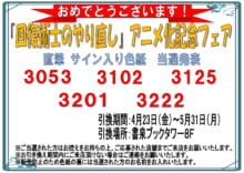 ※時間外の到着は抽選対象外となります。お時間に余裕をもってお申込み下さい ※こちらは販売企画です。当選の際に商品の購入が必要です ※購入は ①店頭購入 ②発送(支払:ゆうちょ銀行)※郵便振替 ③発送(支払:銀行振込) のいずれかを必ずお選び下さい。 ※サイン本は当選者ご本人のみ購入手続きが可能です。