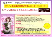 ※「イケメン彼氏は大人のおもちゃ屋さん」について 発売日が5/29→6/26に変更となりました。 あわせてフェア開催期間も変更いたしました。 ※景品のお渡しは6/26新刊入荷後~交換開始となります