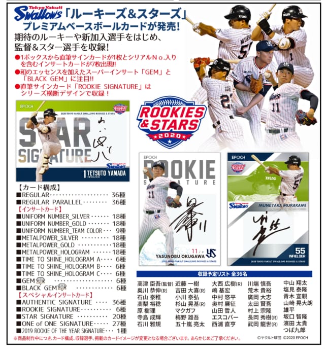 2020東京ヤクルトスワローズルーキーズ&スターズ プレミアムベースボールカード