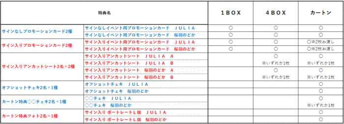 ご予約いただきましたBOX数に応じて下記の特典を配付致します。