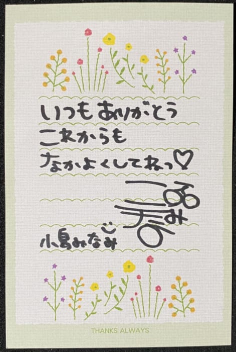 ※直筆サイン、直筆メッセージが入ったミニレターです