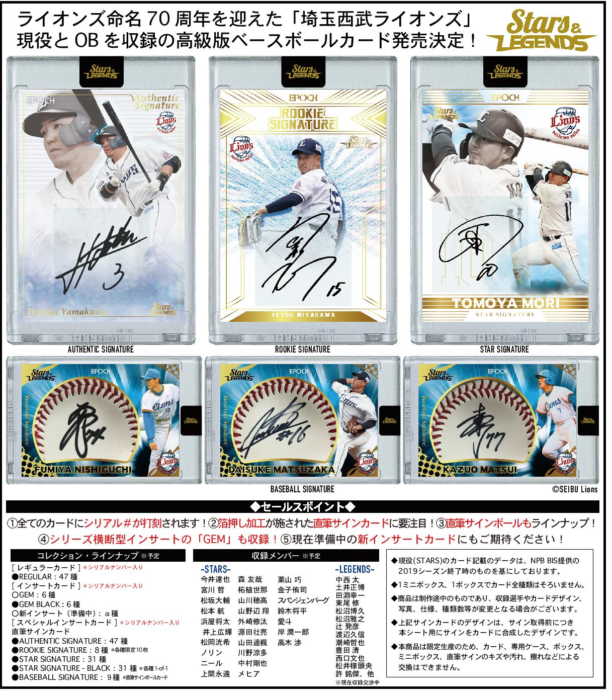 現役とOBとルーキーを収録の高級版ベースボールカード発売決定!