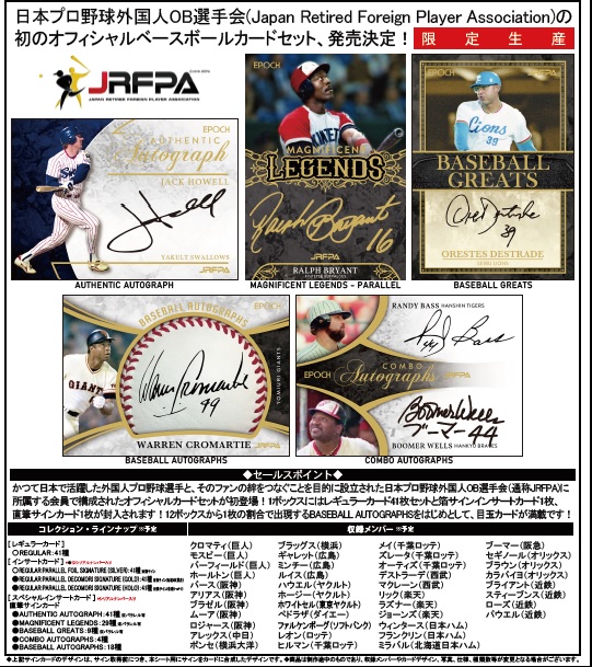 設立された日本プロ野球外国人OB選手会(通称JRFPA)に所属する会員で構成された
